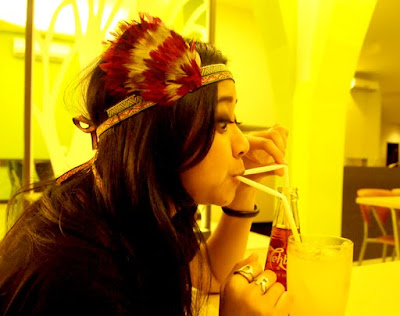 feather headband & artwork, unbranded shirt